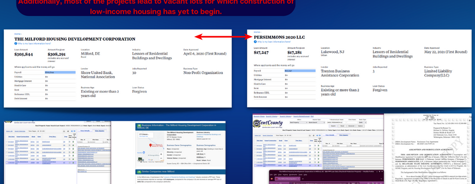 A trove of fraudulent FEDERAL loans, STATE funding, fraudulent land transfers, shell company ownership, and more.
